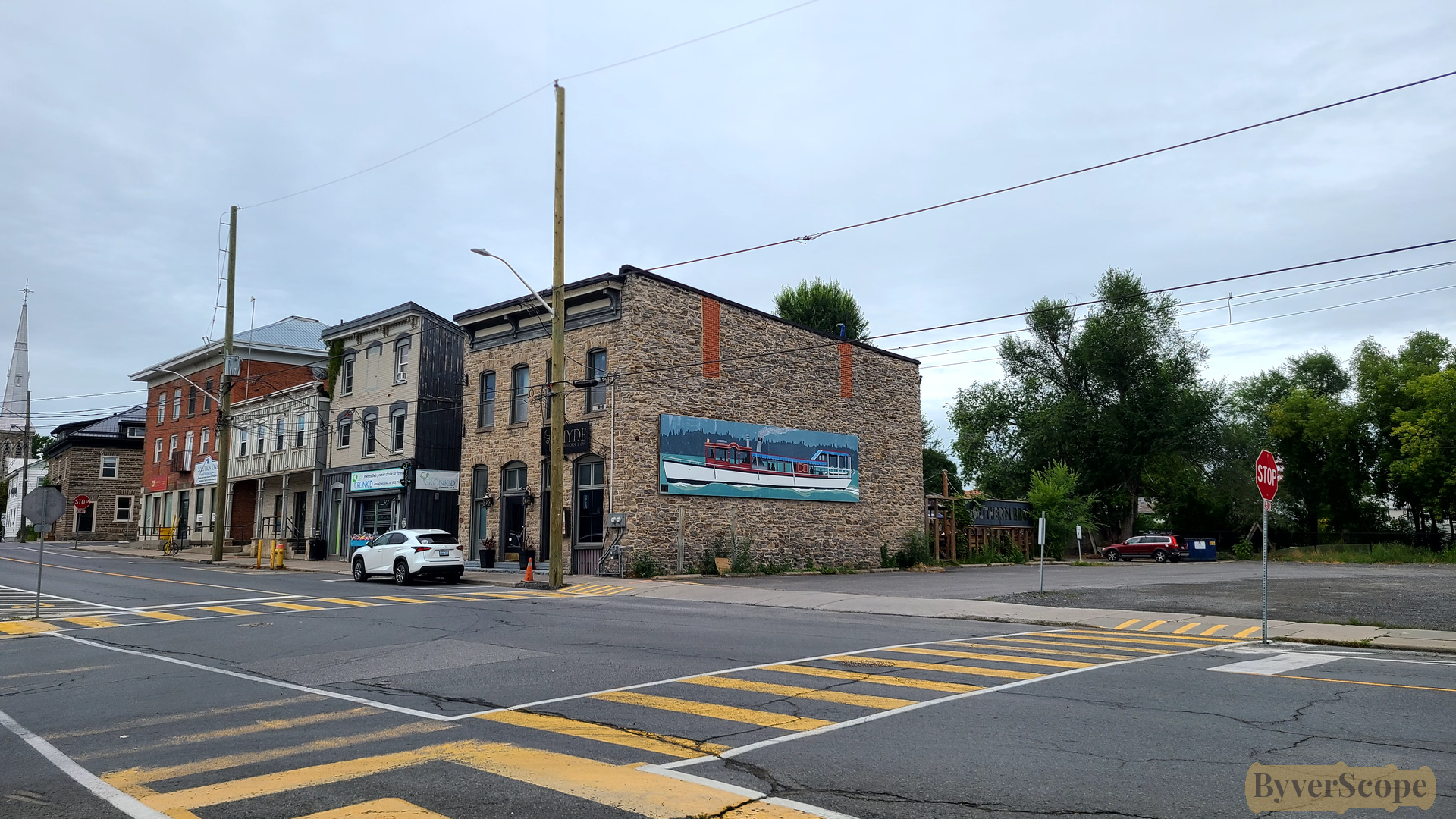Kemptville’s historic core sits along Kemptville Creek, just before it connects to the Rideau River system. Within a compact area, you’ll find memorials, murals, a riverside park, a bridge crossing, and the North Grenville Public Library — all tied together by Prescott Street. It’s not a preserved heritage district in the formal sense, but a working town centre with visible layers of history.