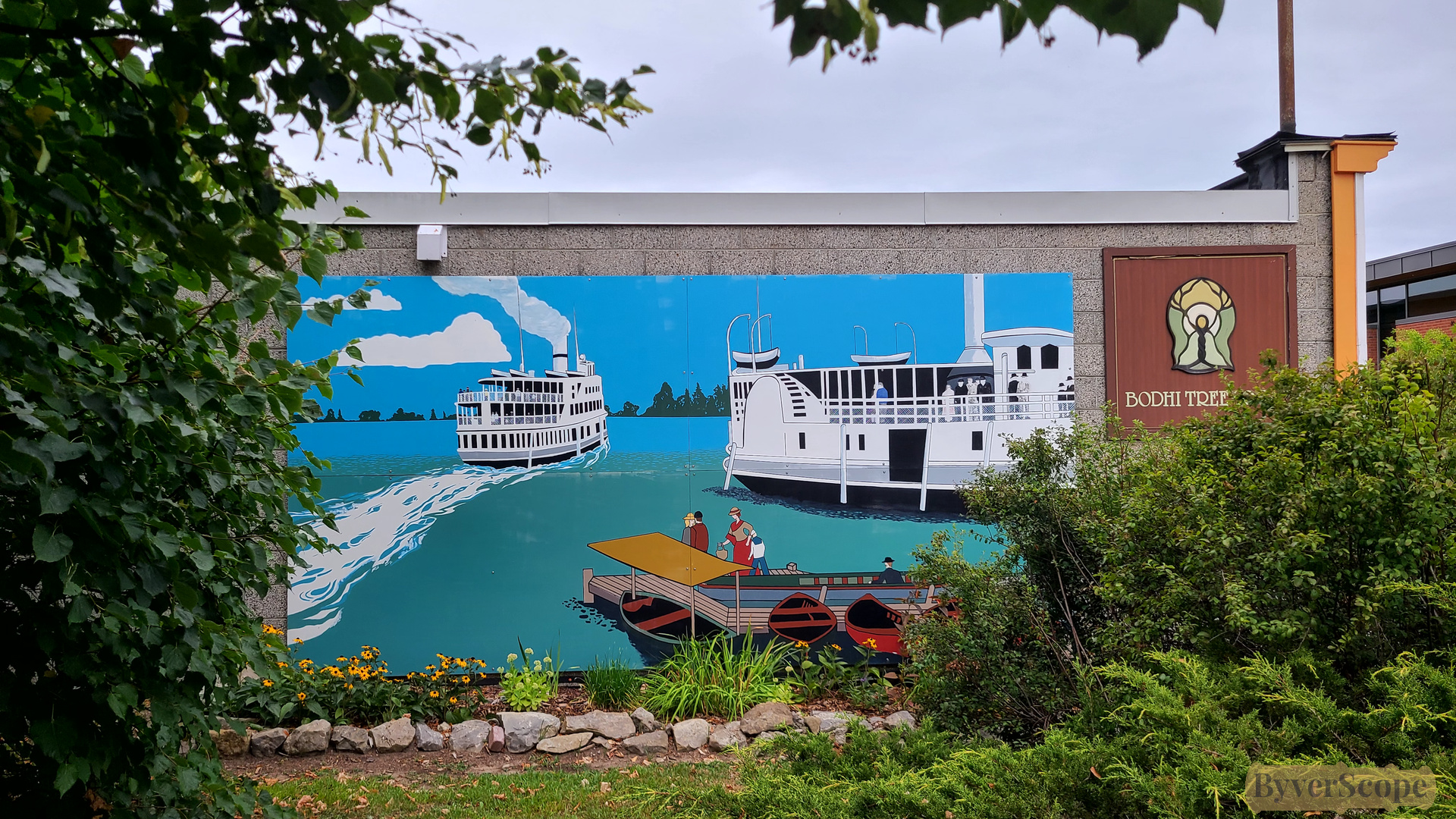 - Murals depicting steamboats and river life